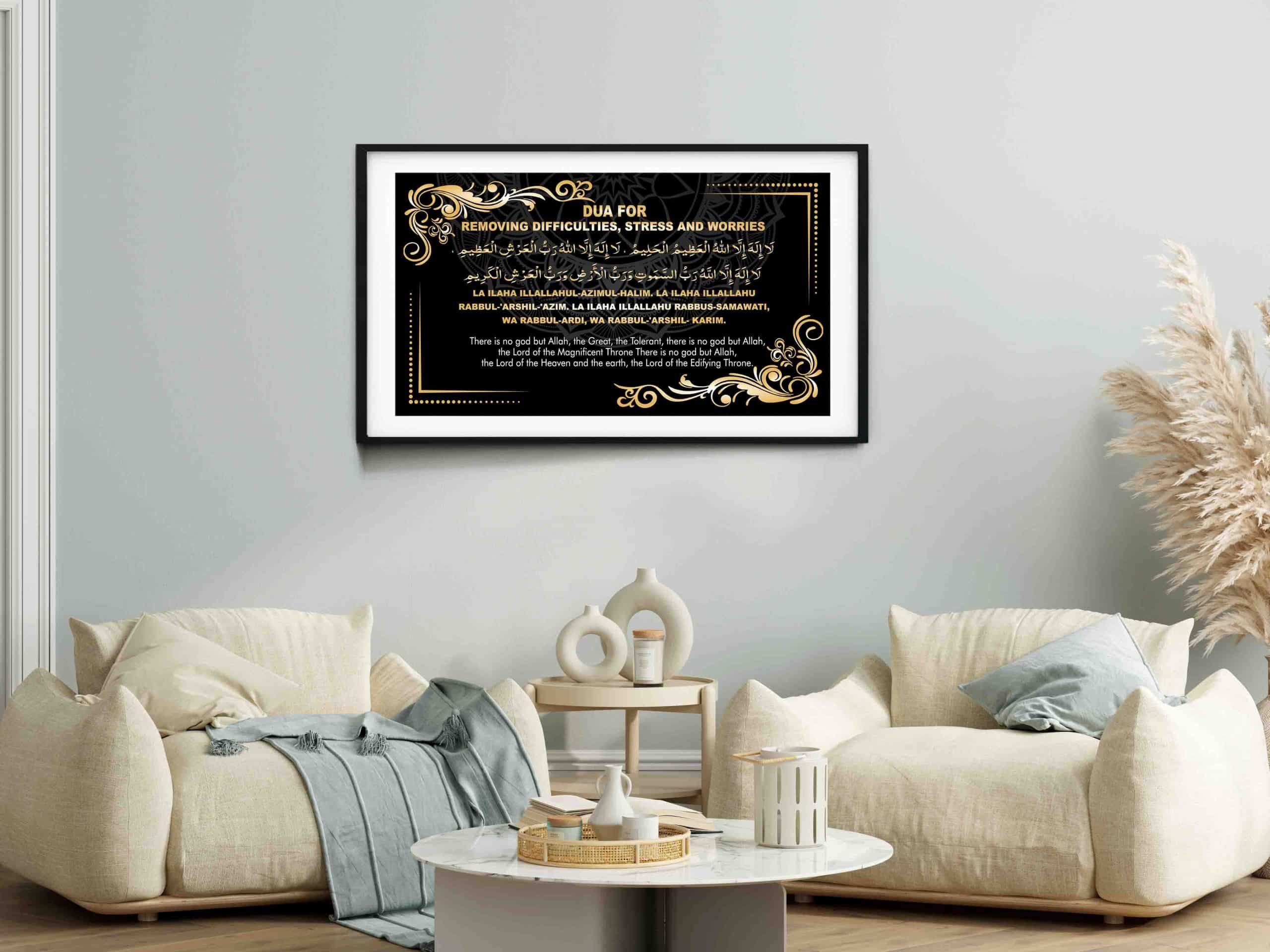 IslamicWallArts.co.uk is dedicated to creating premium Islamic decor that combines faith and artistry. Our Dua for Removing Hardship Wall Art is more than just decor—it’s a source of spiritual reflection and divine connection.