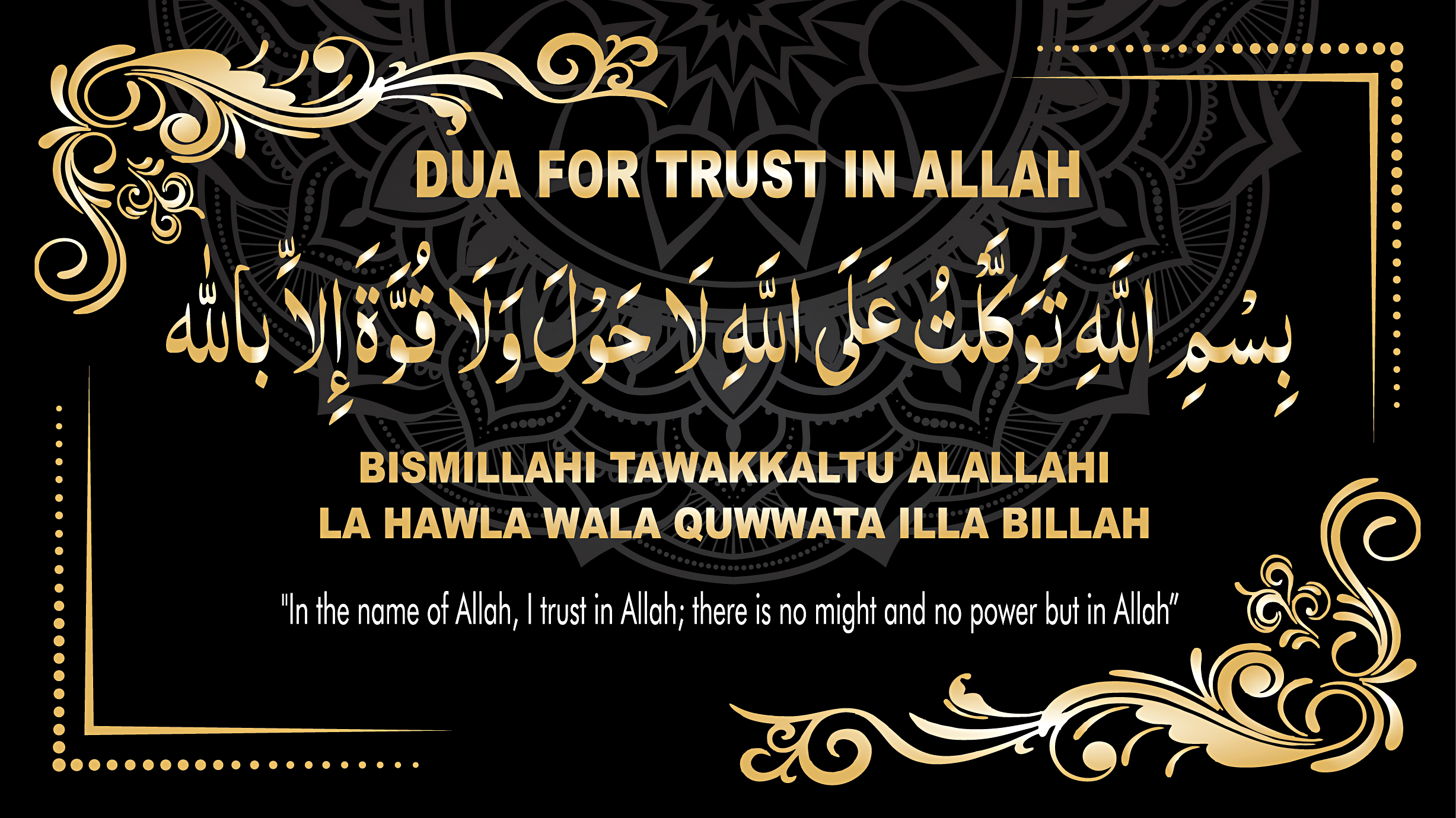 “In the name of Allah, I trust in Allah; there is no might and no power but in Allah.”